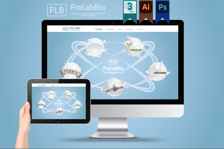 Проект включает в себя разработку баннера для сайта в 3D, что добавляет объемности и динамичности дизайну. Также в проекте предусмотрена разработка логотипа ProLabBio, который будет использоваться на различных платформах и материалах.