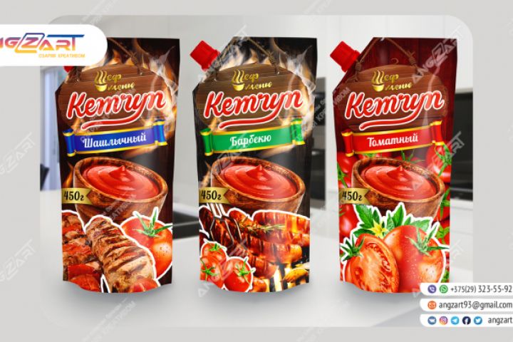 Дизайн упаковки для кетчупов "Шеф меню"