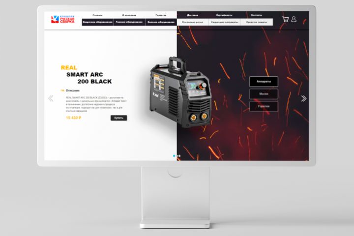 Был разработан дизайн, а также сверстана главная страница магазина по продаже сварочного оборудования "Russian Welding", с необычным слайдером, он листает не только горизонтально, но и вертикально.
