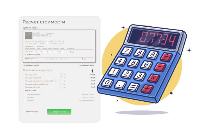 Суть работы заключалась в том что необходимо было создать калькулятор для расчета "Деталей ЛДСП" для интернет-магазина.