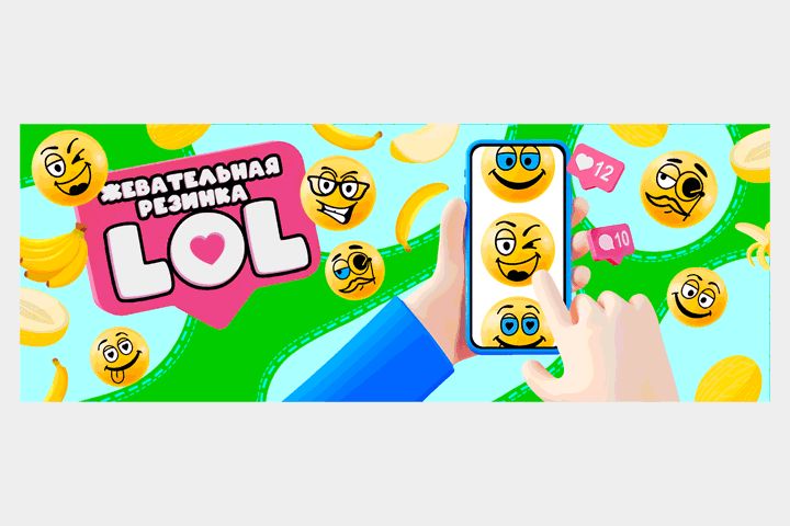Gif баннер для сайта wizardgum. Адаптация двух размеров (компьютерная и мобильная версии) экспорт в mp4