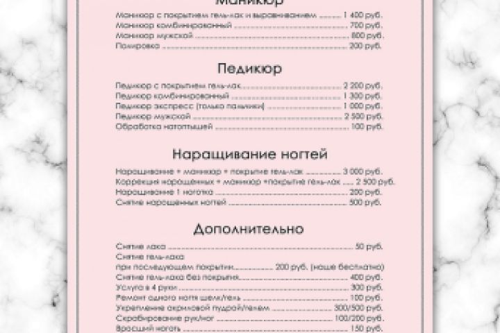 Прайс студии маникюра