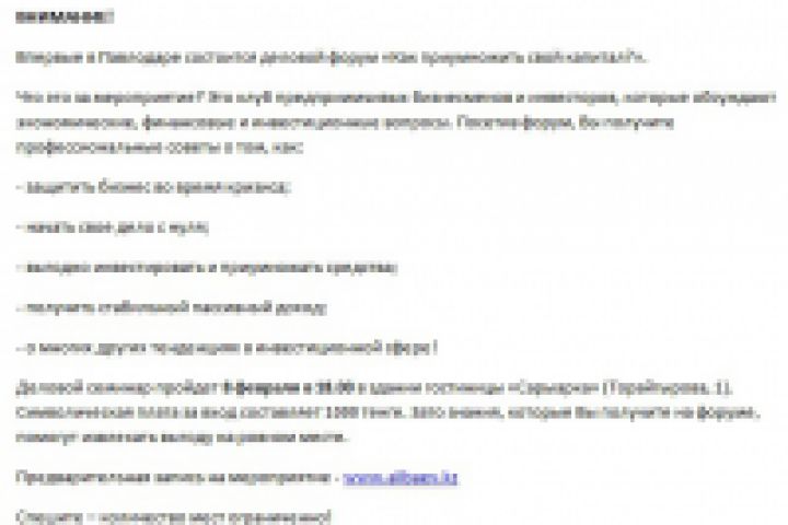 Предложение принять участие в деловом мероприятии, посвященном инвестированию, экономике, развитию бизнеса