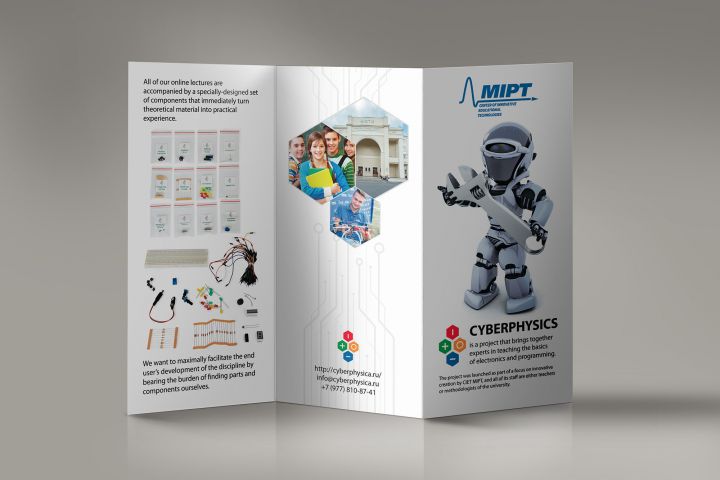 Дизайн и вёрстка буклета-раскладушки на английском языке для одного из проектов МФТИ.