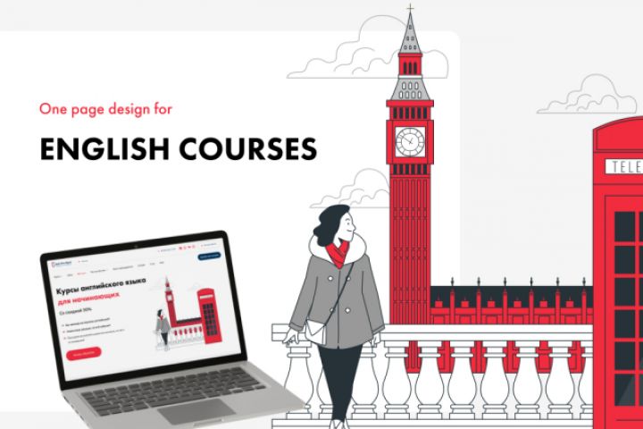 Задача: Сделать дизайн страницы курсов английского языка. Клиент хотел, чтобы страница была сочной и яркой. В английском стиле.