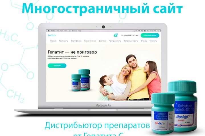 Стояла задача — разработать не угнетающий дизайн для сайта, который является официальным дистрибьютором производителя по продаже препаратов от Гепатита С в России. Сайт должен был быть выполнен в светлых тонах и давать надежду на выздоровление от заболевания. Была оптимизирована "корзина" под тематику сайта.