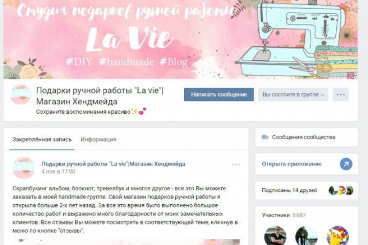 Дизайн шапки-баннера для группы подарков ручной работы "La Vie"