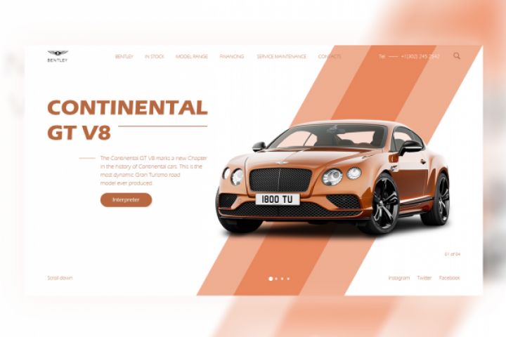 Концепт первого экрана для ознакомления с новинкой Bentley. За основу взят цвет представленной машины. Был выбран шрифт чем-то схожий на машину, такой же "приземлённый" и немного удлинённый.