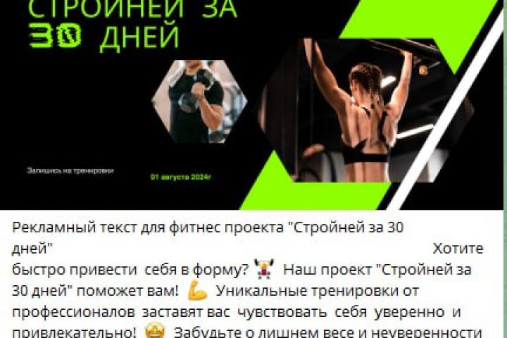 Рекламный текст для фитнес проекта "Стройней за 30 дней"