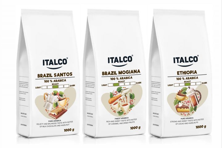 Сочный, яркий, насыщенный дизайн 3-х этикеток для кофе в зёрнах