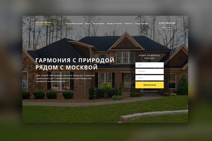 Разработан дизайн коттеджного поселка для продажи готовых домов и участков. Задача была сделать удобный современный сайт, с размещением большого количества информации. Клиент должен минимум заказать звонок, максимум записаться на просмотр. Нужно было донести о качестве, уникальности и надежности.