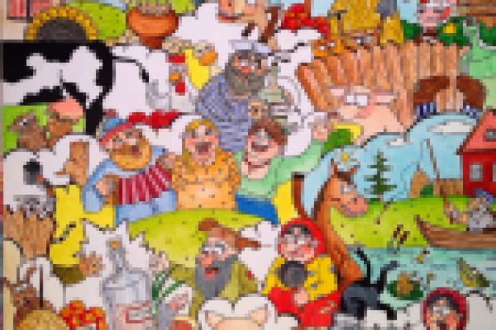 Картина " Деревенская жизнь " нарисована с акварелью , натянута на холст , размер 30 на 30см)