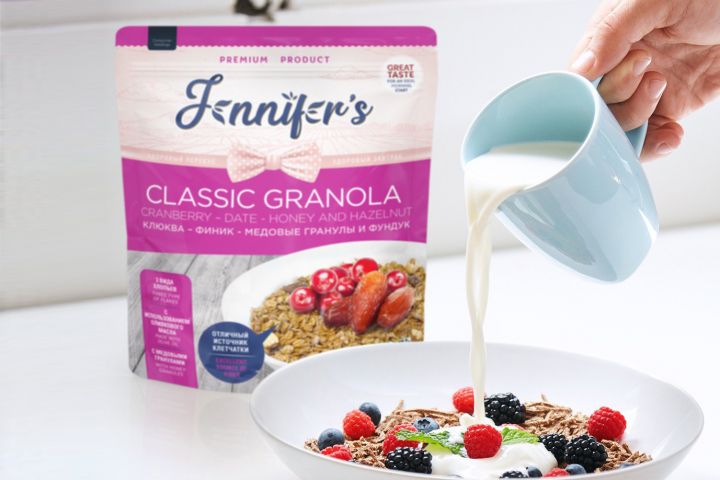 * разработал дизайн упаковки для 5 SKU: сохранил единый стиль, добавил инфографику о преимуществах (без сахара, цельнозерновые), продумал эргономику (удобный клапан, прозрачное окно);