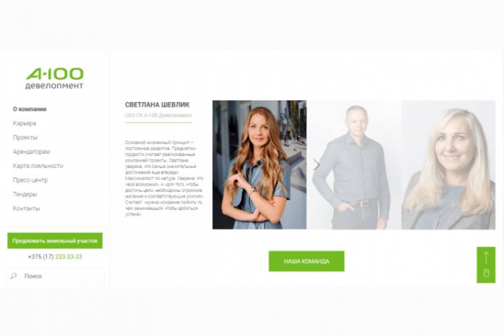 Корпоративный сайт для группы компаний А-100 в Белоруссии.