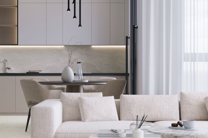 Кухня-гостиная в коттеджном посёлке.