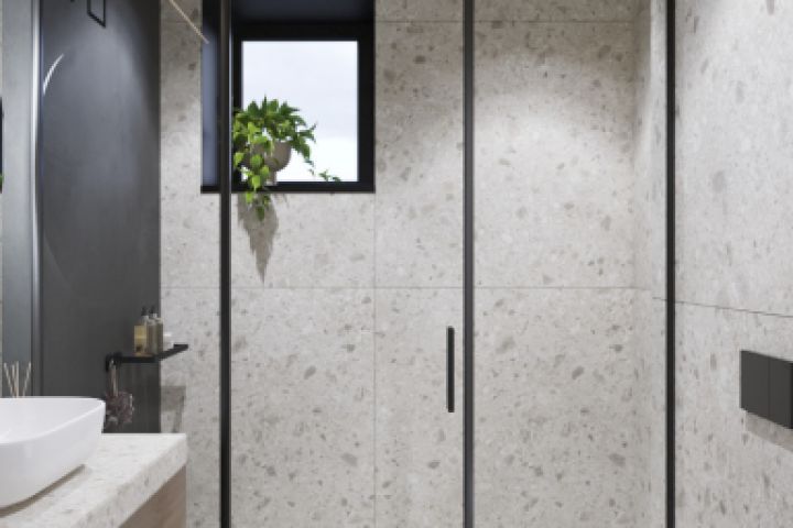 Современная ванная, терраццо, ванная с душем, душ