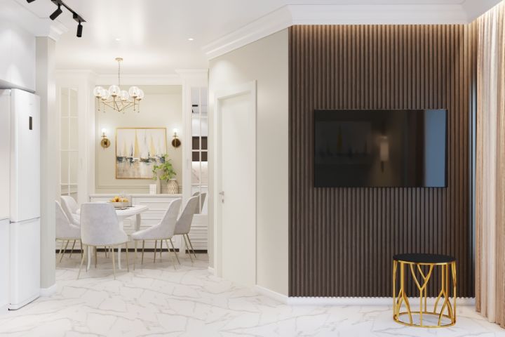 Вид из гостиной на кухню. ЖК Монолит, Н. Новгород