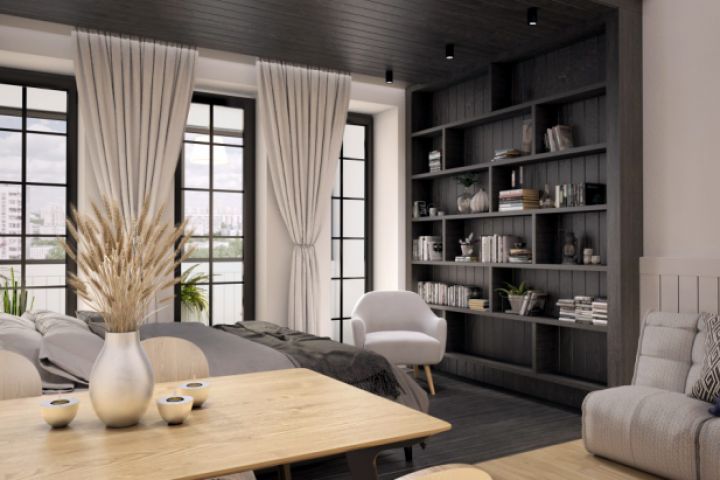 Вид из гостиной на кухню. ЖК Монолит, Н. Новгород