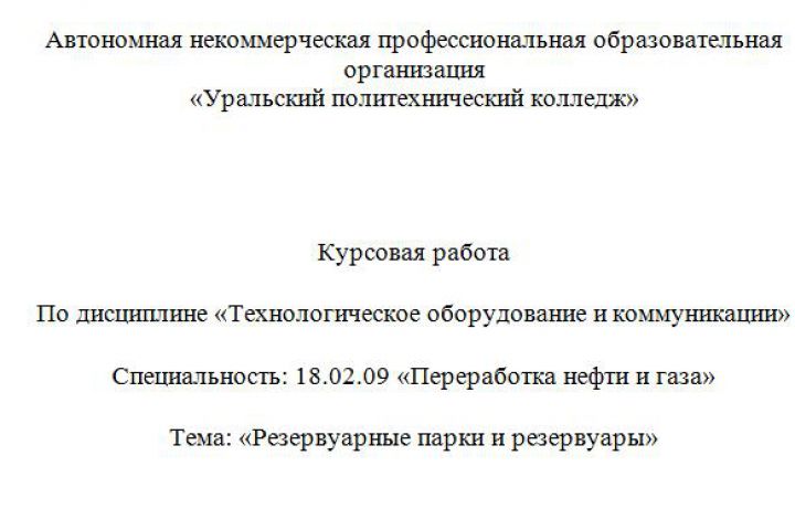 Готовая курсовая работа на тему "Резервуарные парки и резервуары". Выполнен по всем требованиям норм контроля учебного заведения,