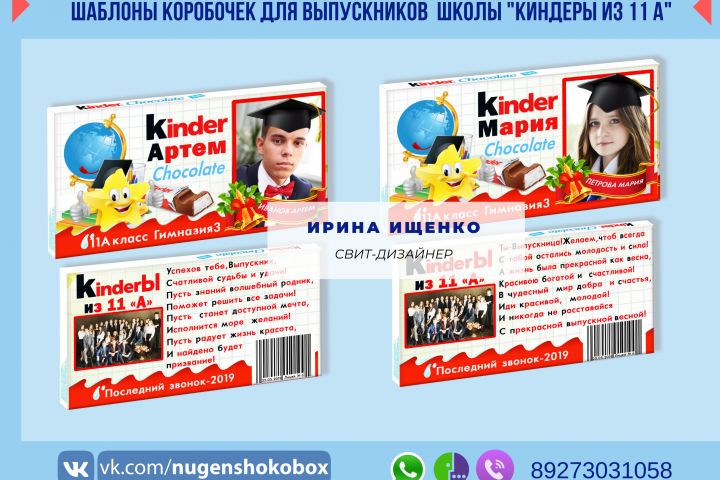 Дизайн фантиков и коробочки под порционный шоколад Киндер. Возможна замена надписей. Шаблон высылается в электронном виде, печать на фотобумаге, матовая, плотностью от 170г/м.кв.