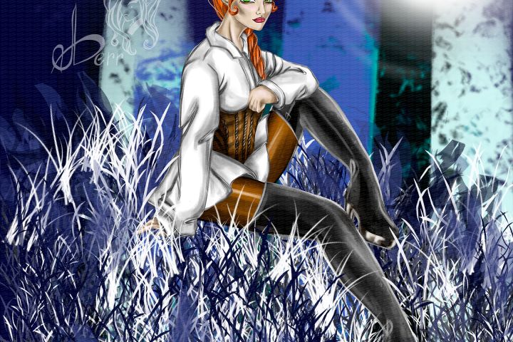 Рыжая (волосы до талии), предпочитает косу. Лопоухая, высокие скулы, веснушки. Глаза зеленые. Невысокая, аккуратная. Носит белую блузу, затянутый под грудью черный кожаный корсет. Черные брюки, ботфорты. Обязательные атрибуты: кольцо на пальце с громоздким гранатом, цепь с сердоликом на шее. На светских приемах предстает в платьях, можно дать волю фантазии. Есть пара конкретных, при необходимости опишу. Чаще материализует магию через ладони. Может использовать меч. Водит дружбу с фелисом (чудище лесное, описание по запросу).