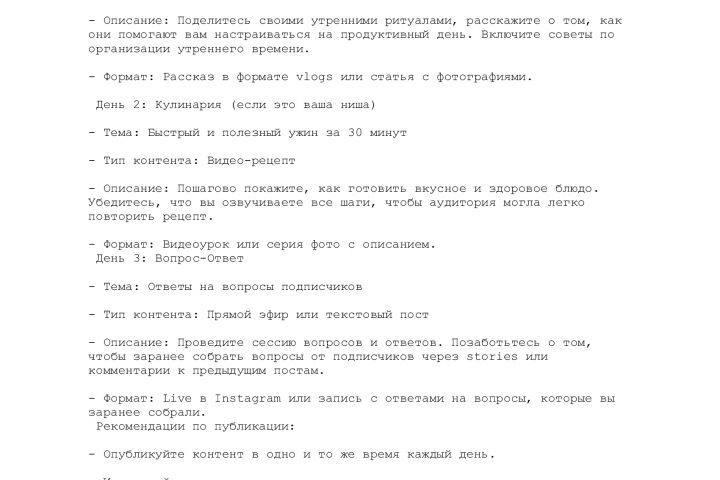 Написал 3 дневный контент план для блогера, в котором расписал его действия и какой и когда контент делать