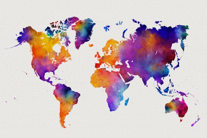Создание файла для печати фотообоев - стилизованная акварельная карта мира с наложением текстуры
