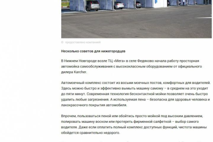 Новость про открывшуюся мойку самообслуживания, рекламная и сео.