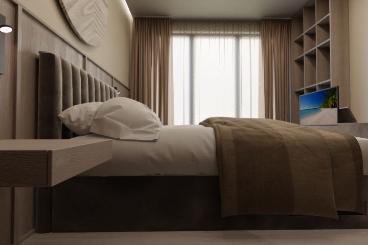 Визуализация кровати в интерьере комнаты