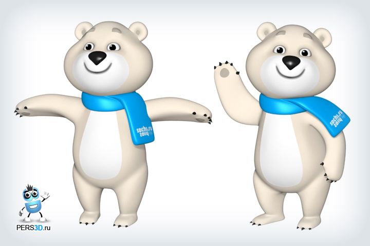 Высокополигональная модель мишки для олимпиады 2014 года с текстурой и настроенным скелетом.