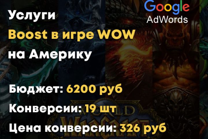 Услуги по прокачке персонажей в игре World of Warcraft Англоязычная аудитория Таргетинг - Америка Всю информацию вы можете увидеть на фотографии. Показатели вполне хорошие. Процент конверсии от 12 до 71%