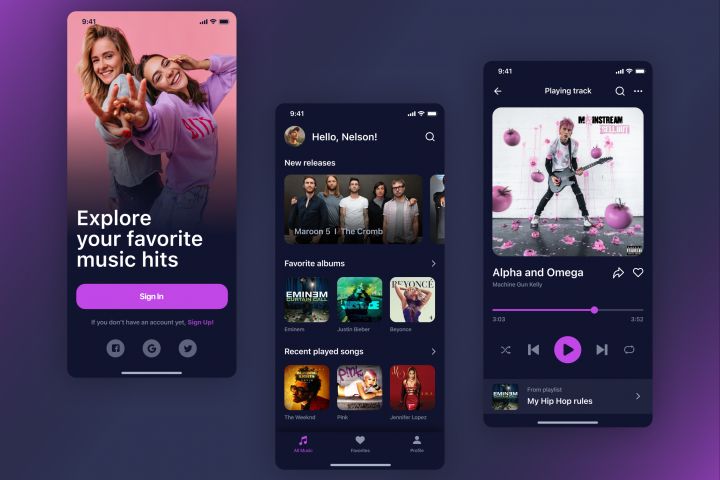 Экраны музыкального плеера для iOS. Проект реализован в Фигме.