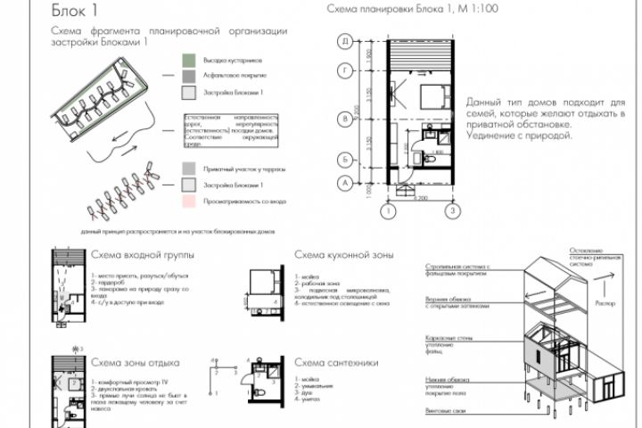 Фрагмент участка (жилая группа) турбазы с посадкой домов для отдыха двух человек.