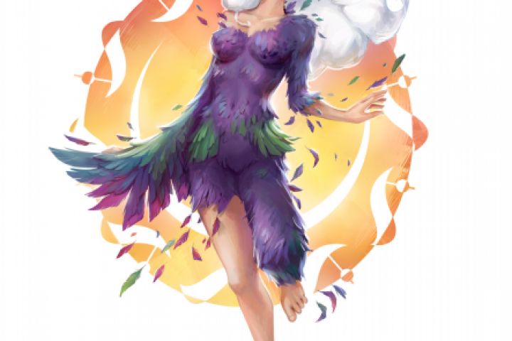 Нежная мифическая иллюстрация. Иллюстрация - вдохновение Необычная девушка снимает с себя перья, волшебным образом они растворяются в воздухе.