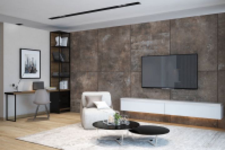 Гостиная-студия в двухкомнатной квартире для молодой пары, любящей комфорт и функциональность. Современный стиль, подчеркнутая простота форм