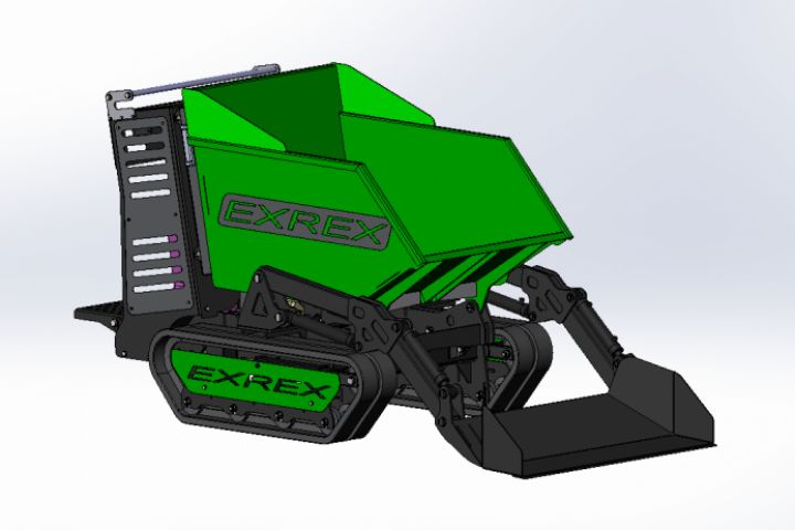 Ширина платформы 800 и 1000 мм., резиновые гусеницы, гидравлический привод, ковш поворотный.