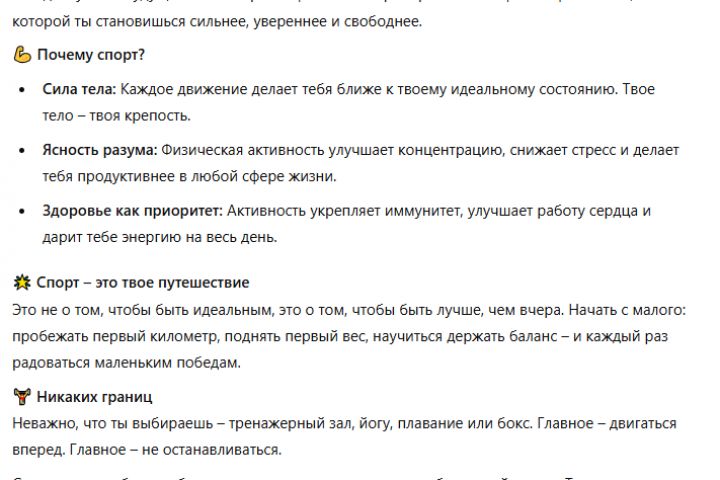Запрос от заказчика: отразить в тексте важность спорта в жизни человека, отразить преимущества занятий спортом