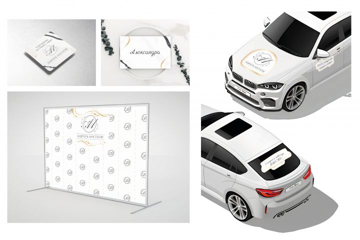 Разработанный логотип монограмма и фирменный стиль для свадьбы