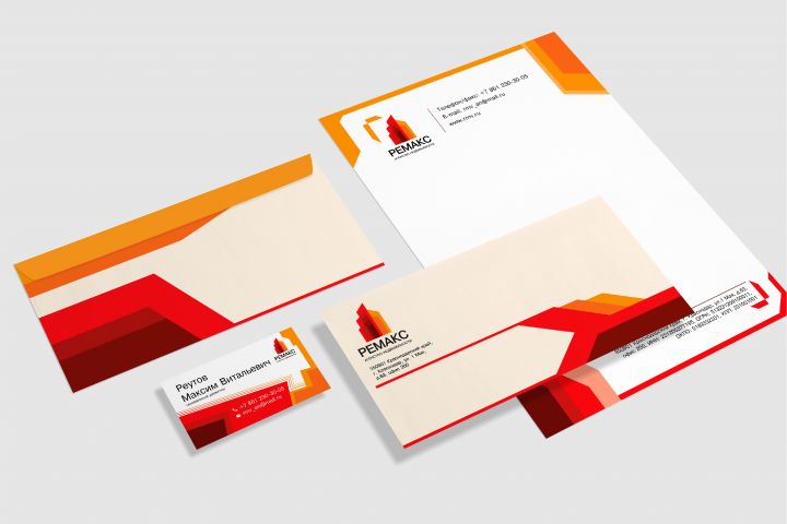 Айдентика компании Ремакс, включающая в себя: - конверт - бланк - визитку