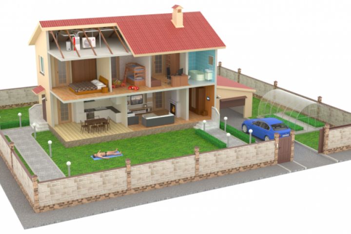 3D-план коттеджа для презентации. Сцена создана в 3D Max, визуализация - Corona + Photoshop.