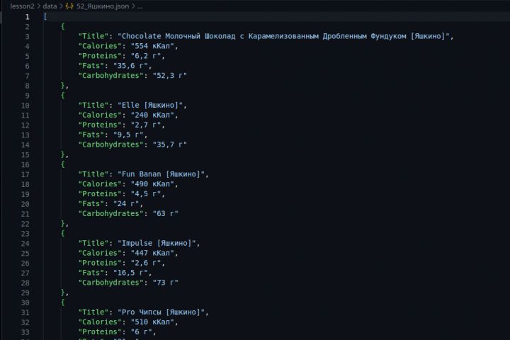 Парсинг данных с сайта https://health-diet.ru/table_calorie/ о калорийности продуктов, и сохранение результатов в файлы JSON и CSV.