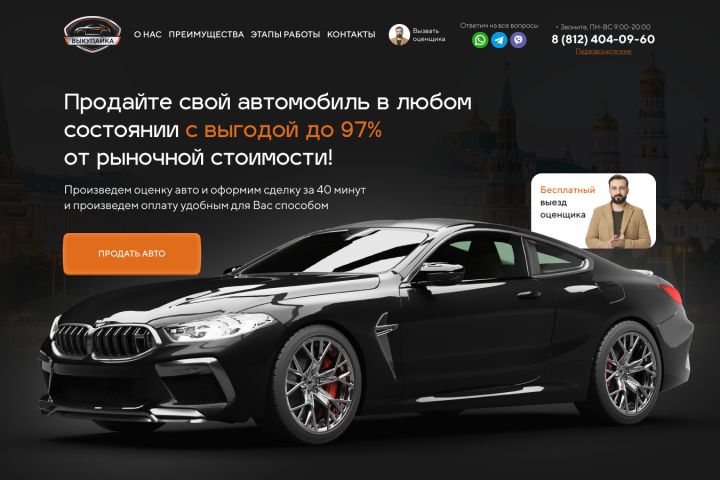 Дизайн лендинга для компании, занимающихся выкупом авто Ссылка на весь проект: https://www.behance.net/gallery/203412261/vykup-avto-Buying-a-car