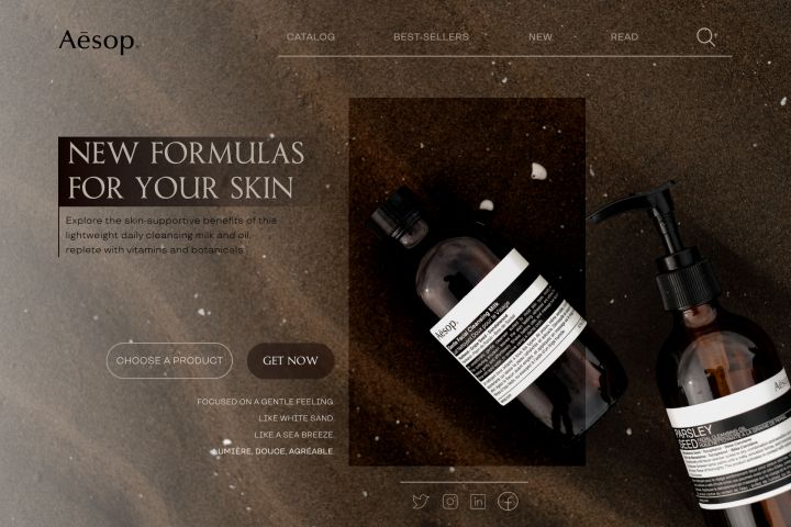 Редизайн сайта Aesop на основе их продуктовых фото + ресайз до инстаграм поста.