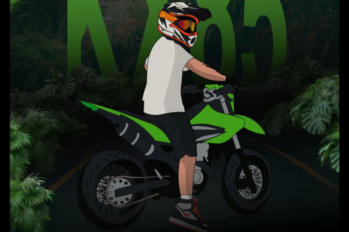Я сделал постер для мотоцикла Kawasaki Kx85. Использовал Adobe Photosop и Adobe illustrator. Сначала я нарисовал героя по центру в иллюстраторе, затем соединил все элементы в фотошоп.