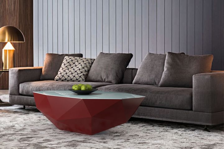 Стеклянный стол на металлическом подстолье в полигональном стиле