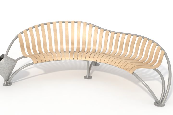 Уличная скамья из гнутой фанеры на каркасе из стальной трубы.