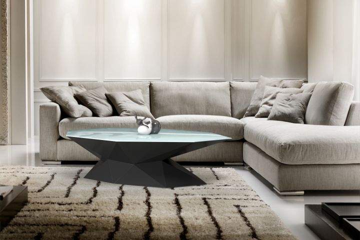 Стеклянный стол на металлическом подстолье в форме торнадо в параметрическом стиле