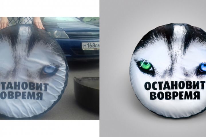 Чехол на колесо: ретушь складок, обработка, замена фона, дорисовка тени