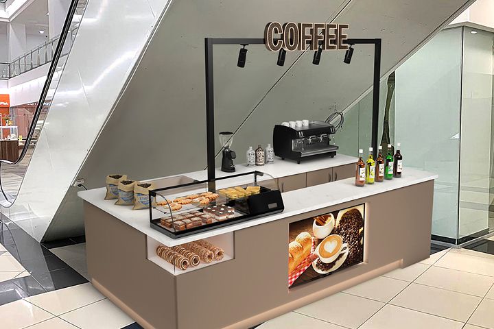 Было выполнено: 3d моделирование торгового островка в ТЦ с наполнением, фотореалистичная визуализация и привязка к фото.
