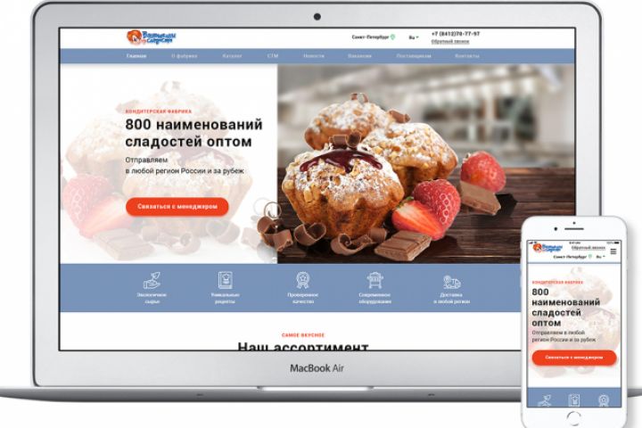 Создание дизайна главной страницы на десктоп и мобильные устройства для фабрики Ванюшкины сладости